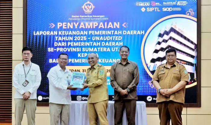 Since24News.com|Simalungun – Pemerintah Kabupaten (Pemkab) Simalungun menyerahkan Laporan Keuangan Pemerintah Daerah (LKPD) Tahun 2025 (Unaudited) kepada Badan Pemeriksa Keuangan (BPK) RI Perwakilan Provinsi Sumatera Utara (Sumut).