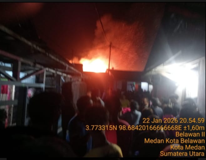 Since24News.com|Belawan – Kobaran api menghanguskan sejumlah rumah warga di jalan Selebes, Gang 15, Lingkungan 30, Kelurahan belawan II, Kecamatan Medan Belawan.