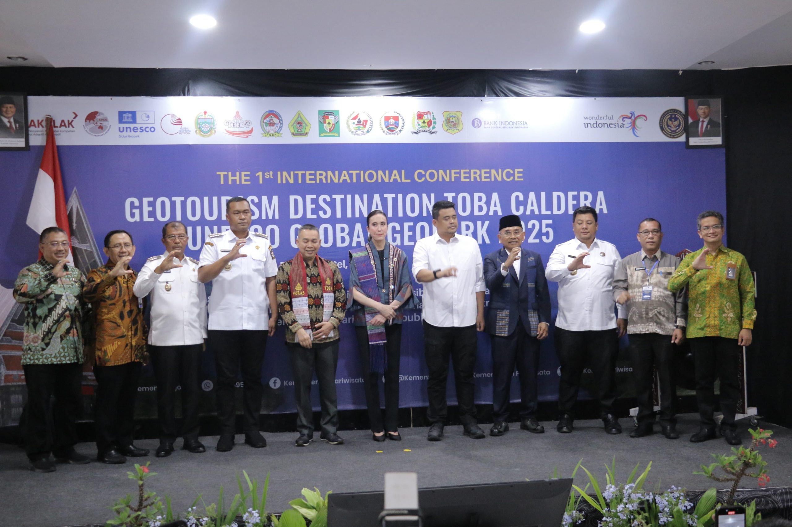 Gbr : Seminar Internasional revalidasi Toba Caldera UNESCO Global Geopark, Parapat, Selasa (8/7/2025).