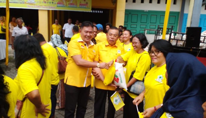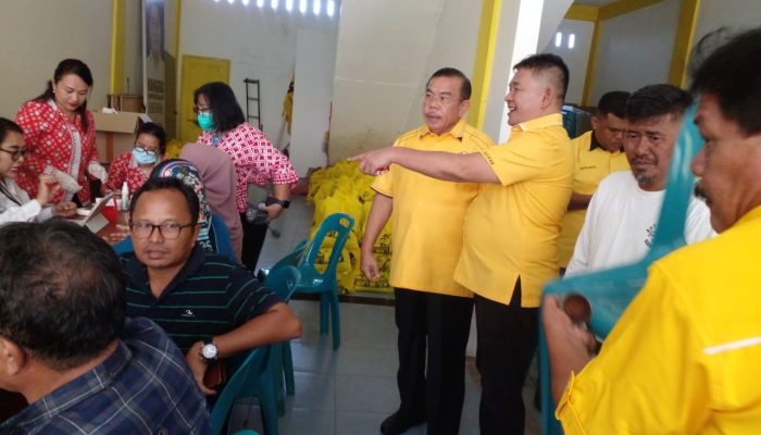 Selain pengobatan dan pengecekan Kesehatan gratis Anggota Komisi III DPR RI itu juga membagikan 500 paket Sembako kepada warga. Dalam sambutannya, Mangihut mengucapkan terimakasih kepada seluruh warga simpatisan partai Golkar.