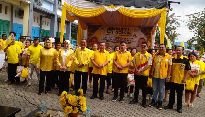 Since24News.com|Pematangsiantar – Ratusan Warga Pematangsiantar antusias meriahkan perayaan hari ulang tahun (HUT) Partai Golkar ke 61 di Pelataran kantor DPD Partai Golkar Pematangsiantar, jalan Rakutta Sembiring, kelurahan Naga Pita, kecamatan Siantar Martoba, Pematangsiantar, pada hari Kamis (16/10/2025).