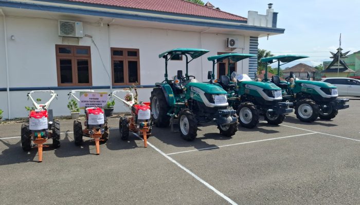 Since24News.com|Dairi – Pemerintah Kabupaten Dairi bersama-sama dengan anggota DPR RI Komisi III, Mangihut Sinaga, SH MH, menyalurkan 6 unit Alat Pertanian (Alsintan) berupa 3 unit traktor roda 4, 3 traktor roda 2 dan benih Padi Gogo, kepada 6 kelompok tani dari 4 Kecamatan yang ada di Dairi. Selasa (28/4/2026) di pelataran Pendopo Bupati Dairi.