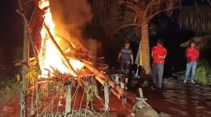 Gubuk-gubuk tersebut kemudian dibakar oleh petugas.