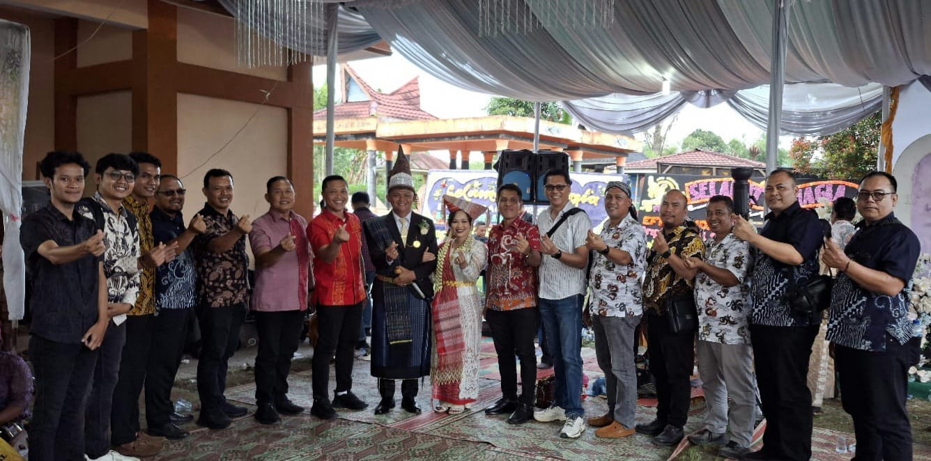 Di tengah para undangan, tampak pula hadir pimpinan umum mediandonews.id, Jonando Purba, yang turut menyampaikan doa dan ucapan selamat kepada pasangan pengantin.